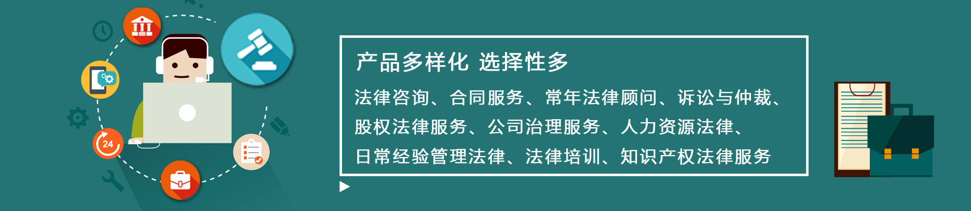 服务范围包括:常年法律顾问(劳动人事、合同评审、法律尽职调查、法律培训等)、专项法律服务、并购重组、投融资、私募股权、资本市场、公司治理与股权管理、公司控制权与股权设计、争议解决等领域提供法律服务。